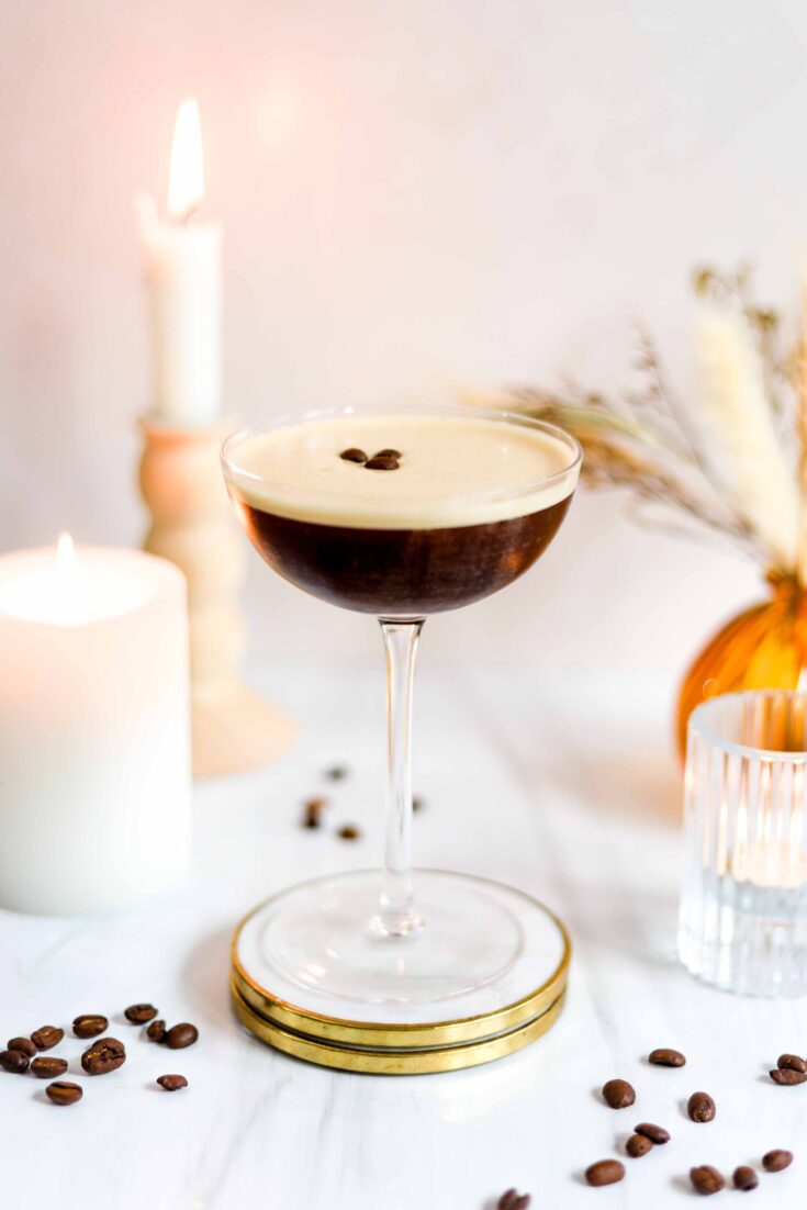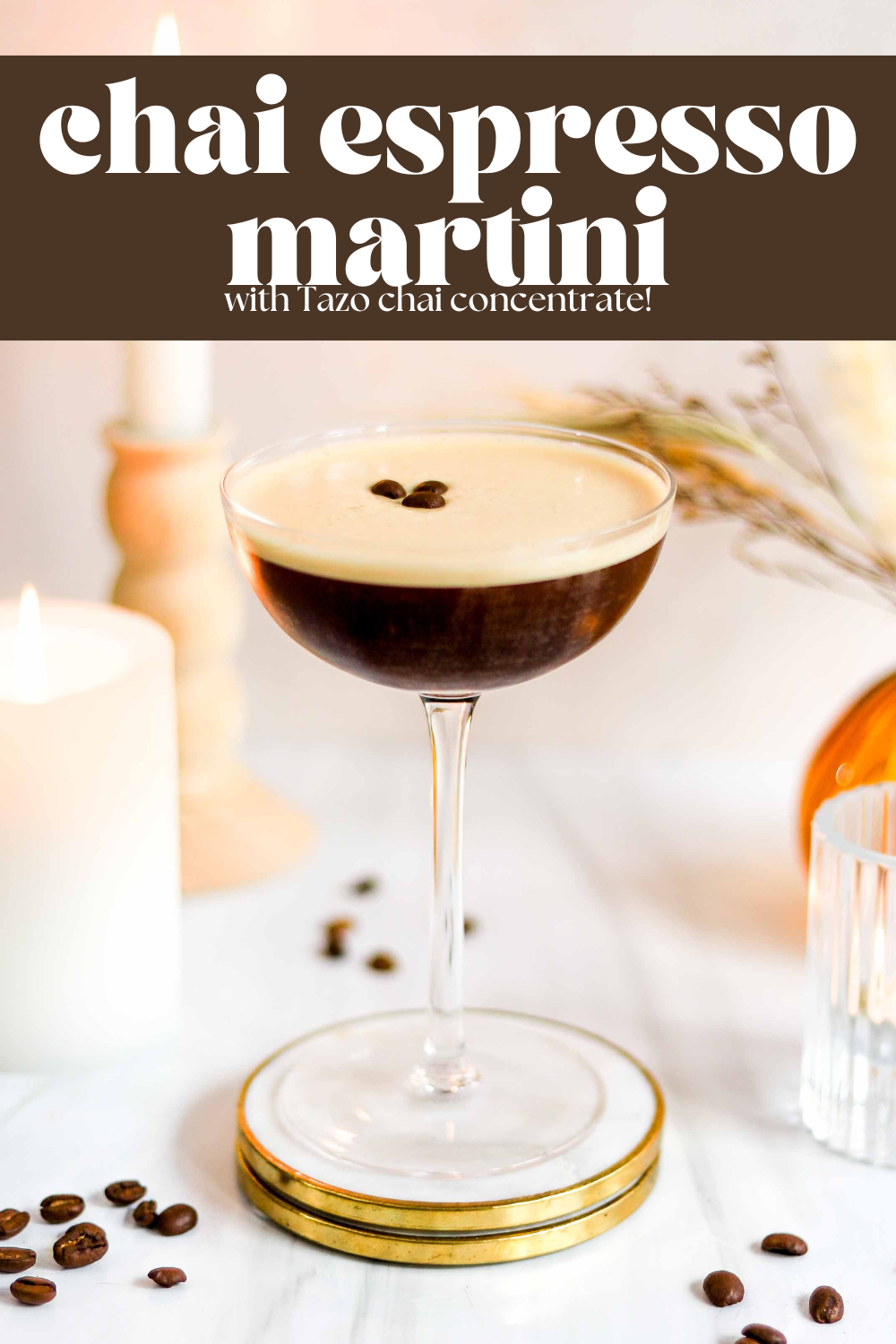 A chai espresso martini is your traditional espresso martini recipe, but with a splash of chai concentrate to give it a deliciously spicy fall twist!