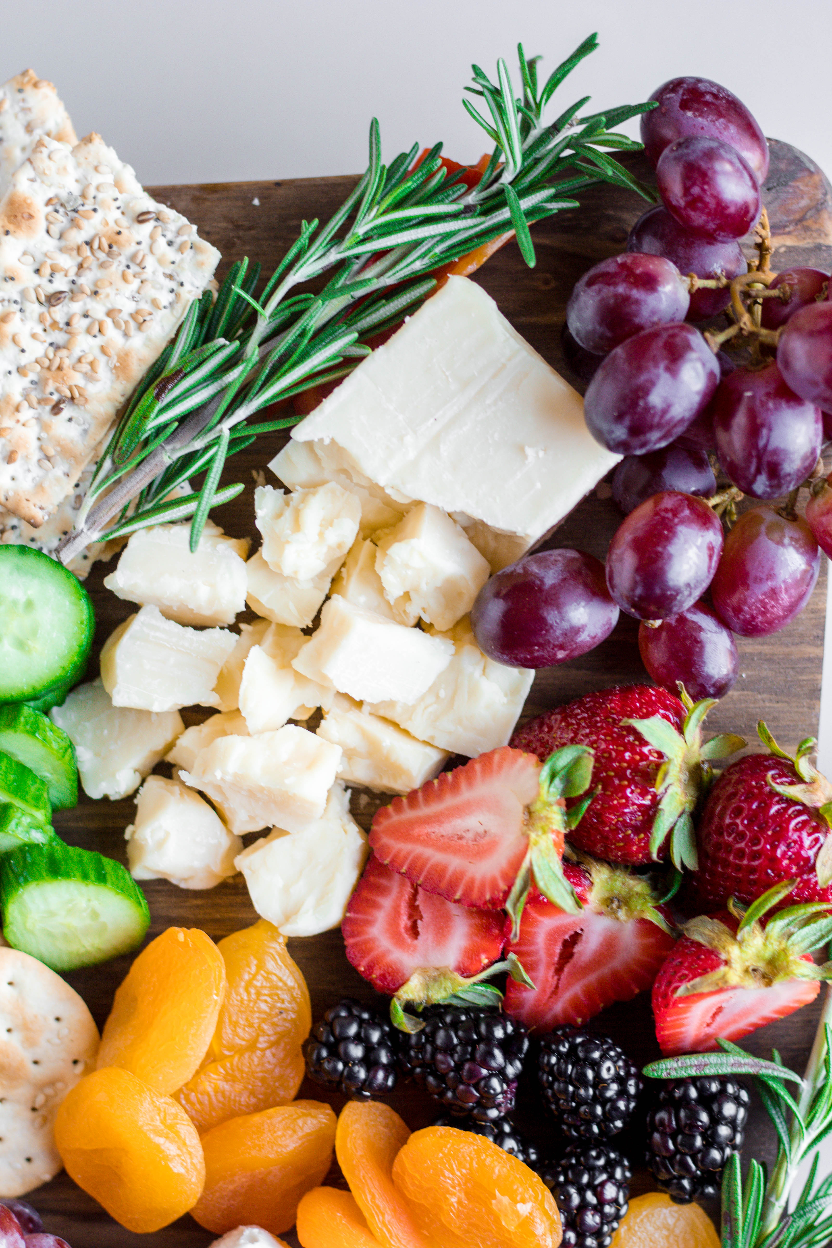 Cheese. You'll want to include a variety of cheeses, for a summer charcuterie board, some of my favorites are blue cheese, honey goat cheese, a wheel of brie, white cheddar, herbed havarti, or parmesan are all great options.